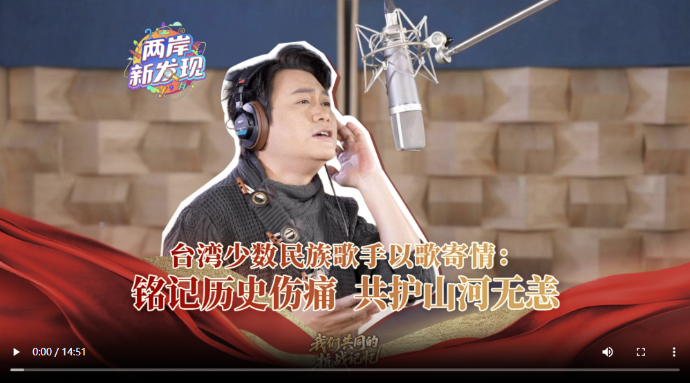 抗战胜利和解放台湾,是全民族的伟大胜利,是中国人民和中华民族共同的伟大荣耀。台湾少数民族歌手杨品华参观了主题为“共筑民族之魂”的专题展览,回顾了台湾同胞的抗日斗争历史,走进侵华日军731部队罪证陈列馆,与台湾同胞畅谈侵华日军的罪行。他们还深情演唱了电影《731》主题曲《愿你再见我》,希望通过歌曲,海峡两岸同胞铭记历史,共创未来。